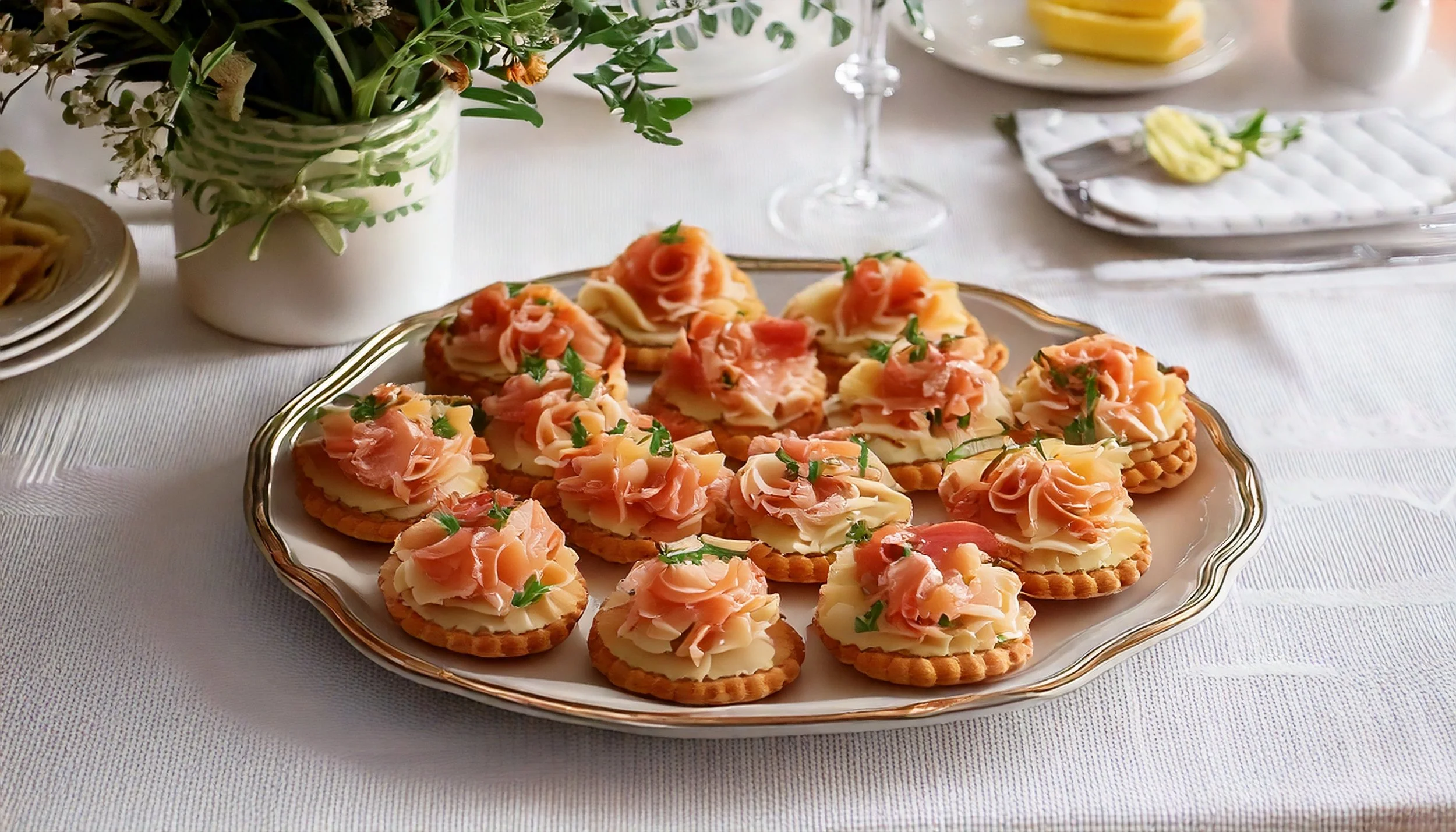 We also had an appetizer while we waited for the Boeuf Bourguignon. Don't think it was forgotten just because we were exhausted from preparing dinner. We couldn't have a big appetizer, because then we wouldn't have had the capacity to finish dinner, which we struggled with anyway! For the appetizer, I made small wrapped canapes. If you're wondering what a wrapped canape is, it's serrano ham spread with Philadelphia cheese, sprinkled with chives, then sprinkled with grated cheese on top again and then wrapped and cut into small pieces, which are placed on crackers of your choice, we used Ritz. These were absolutely amazing! Very easy to make and serve before a party.