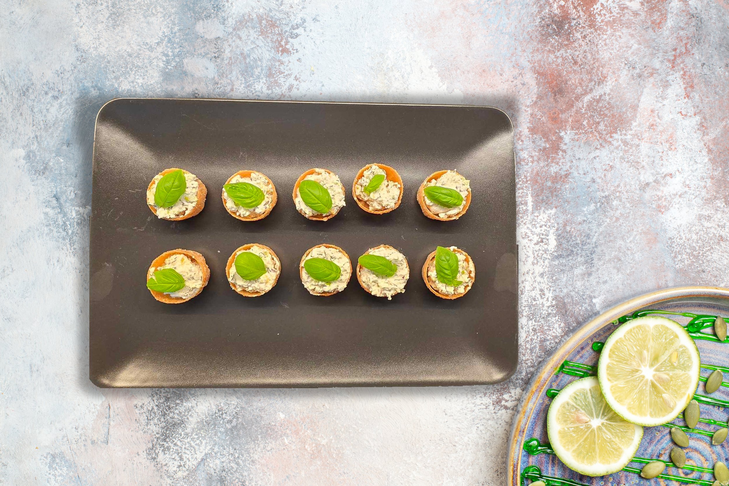 When you go on a diet, you usually look forward to the one day where you can eat a little more and a little "unhealthy". We try to stick to the diet on the weekends too, but allow ourselves to eat more calories, this in the form of usually having an appetizer. We have a date night every Friday, with comfort food, wine and drinks. As I have already written, I love making appetizers and small dishes, this is where creativity can run wild. Today like every other Friday I have made small appetizers. Today I couldn't stick to just one thing, I found two recipes that I wanted to try. The first was a simple caprese, but instead of making a salad that everyone is familiar with, these are on cocktail sticks. A small, delicate mouthful. Easy to make, fresh and good to eat. I love tomatoes, and try to have tomatoes in most of my dishes. The second small dish I made was Asian crab salad Croustades. I replaced crab with shrimp, since I couldn't get hold of crab meat. I buy the croustades ready-made at Meny. I sometimes make my own from filo dough.