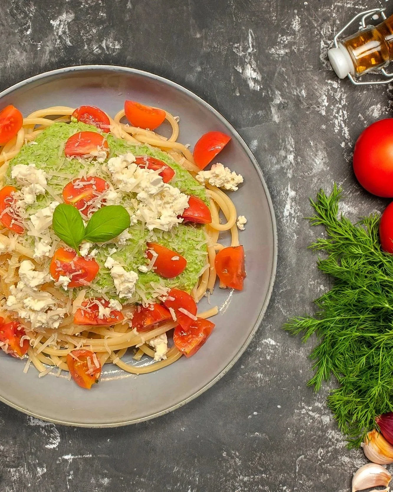 Hey guys! Here is one of my and my fiancé's favorite pasta dishes, Pesto Pasta with Halloumi. I recommend this for those days of the week when you want vegetarian food, but still want to eat something filling and delicious. This dish is just as good on a weekday as it is on a weekend dinner.